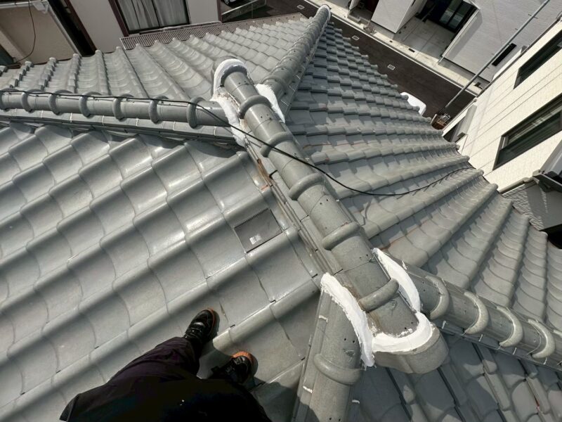 後日、実際に現場調査を実施し、屋根に直接上がって現状を細かく確認しました。