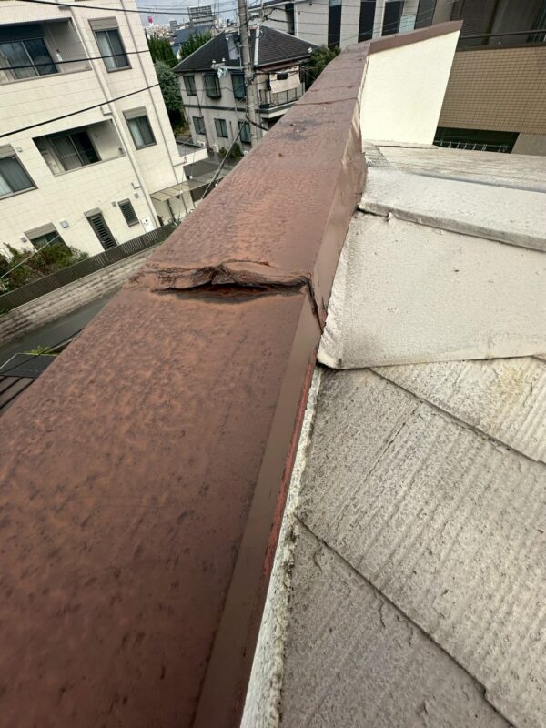笠木部分の継手が劣化しておりここから雨が浸入する可能性もございます。