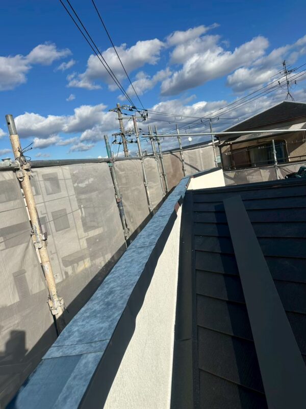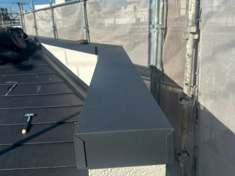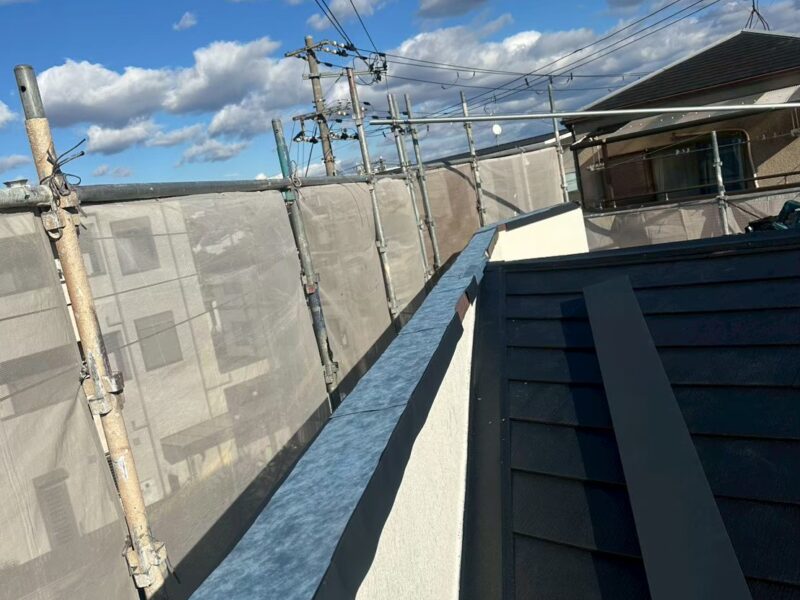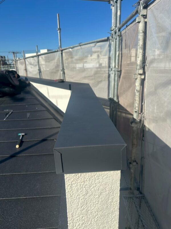 笠木の天端にもきちんと防水シートを貼っていきます。