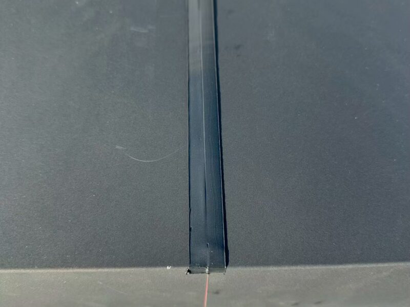 雨押え板金部分に実際にコーキング処置します。これで雨の侵入を防ぎます。