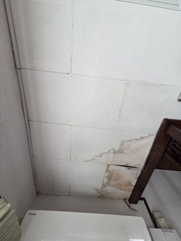 1階の雨漏りもみられ、こちらの場合は水が柱を通って侵出したものだと推察されます。