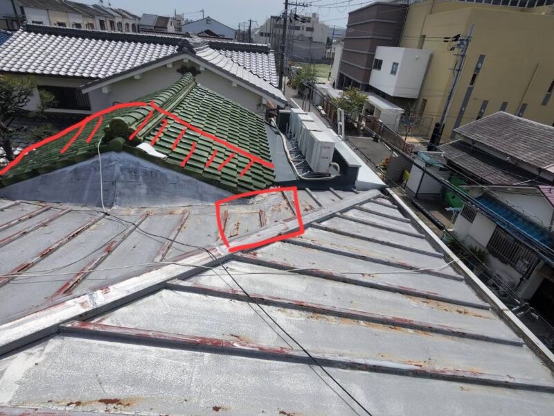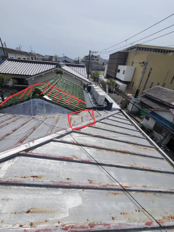 谷板金が錆びてしまっており、このままの状態だと雨の侵入を許してしまいます。